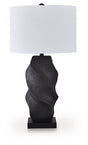 This table lamp puts a chic twist on casual lighting. Its base draws the eye in with a rich sense of movement, while the classic black finish has the versatility to pair with a variety of styles. Place it on a desk or end table for instant functional flair.