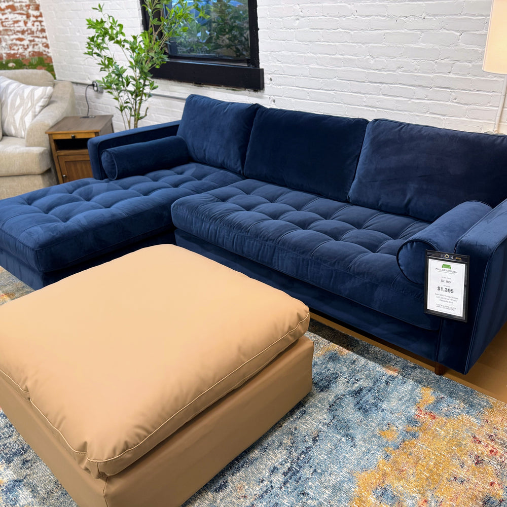This is an Article Sven 100" Tufted Velvet Left Sectional in Plush Cascadia Blue fabric. It's in perfect and brand new condition with no defects.