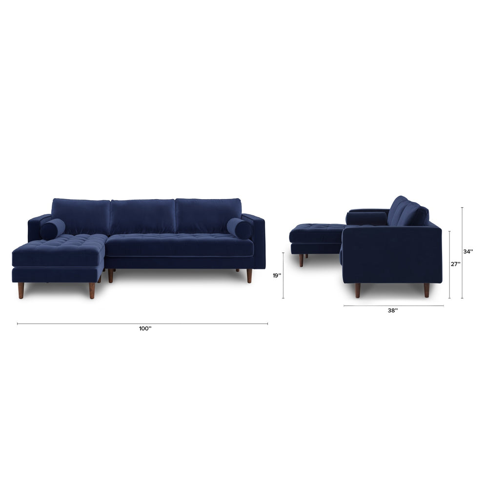 ARTICLE - Sven 100" Tufted Velvet Left Sectional - Plush Cascadia Blue