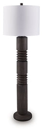 A distressed black finish and carved details make this contemporary floor lamp hard to miss. Its distinctive profile is fresh and forward thinking, illuminating your home with just the right amount of sophistication.