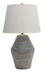Product Details- Made of terra cotta and wood with modified drum hardback fabric shade