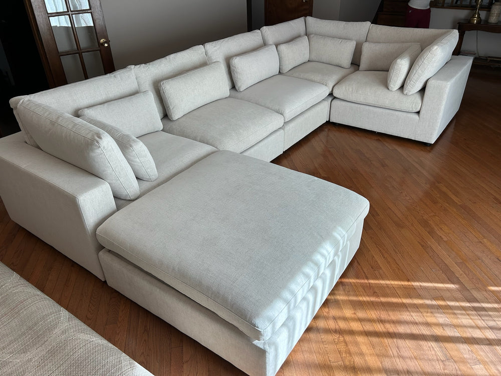 The Serenity Cloud modular sectional delivers the same dreamy comfort and design as the $7,000+ West Elm Harmony—but with smart upgrades. Built with a solid plywood frame, feather-blend cushions, and liquid-repellent performance fabric, it offers luxurious comfort and durability. Fully modular and featuring hidden ottoman storage plus washable covers, it’s the perfect blend of style, function, and everyday ease.