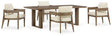 Elevate the appeal of easy-breezy living with this outdoor package. Made to look like wood yet durable enough to weather the elements, this furniture is sure to serve you and your besties well, year after year. The gently curved chairs feature cushions wrapped in Nuvella+™ high-performance fabric for plush refinement.