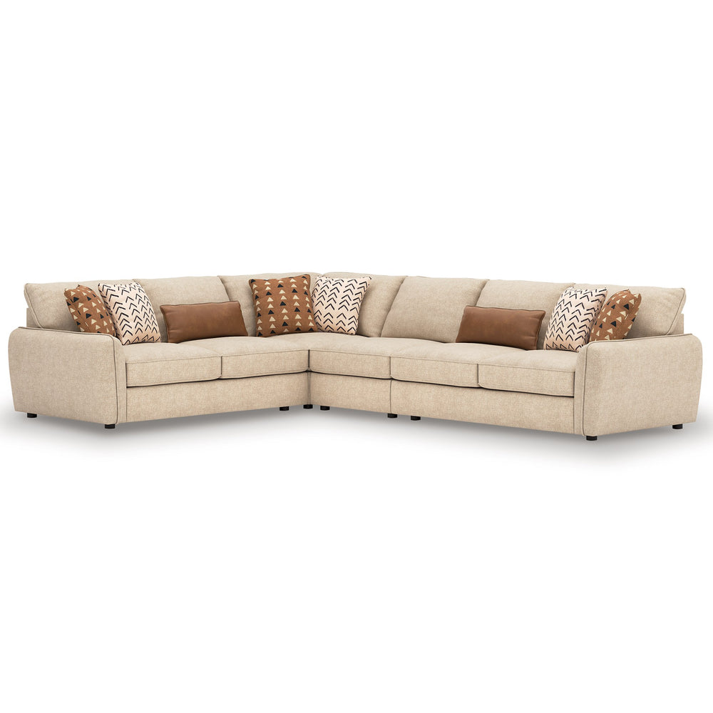 This beautifully crafted sectional delivers style and comfort in a big way. Upholstered in a soft yet heavyweight neutral fabric, with plush cushions and subtly rounded armrests, it entices guests to sit and relax. Globally inspired accent pillows and a caramel faux leather lumbar pillow add a wonderful layer of interest. You’ll love this sectional's enduring flair, and the way it perfectly fits your contemporary style.