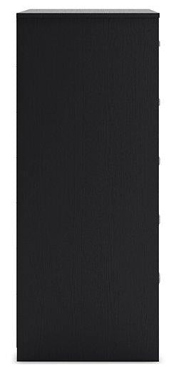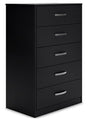 Practical and attractive, this chest of drawers blends seamlessly with modern decor and makes a smart addition to a bedroom. Five spacious drawers will keep your clothes neat and organized. Sleek metal pulls in a brushed nickel-tone finish add to the streamlined aesthetic. Combine with other pieces in the collection to create a room thatโ€™s smart and stylish.