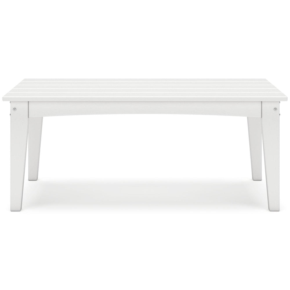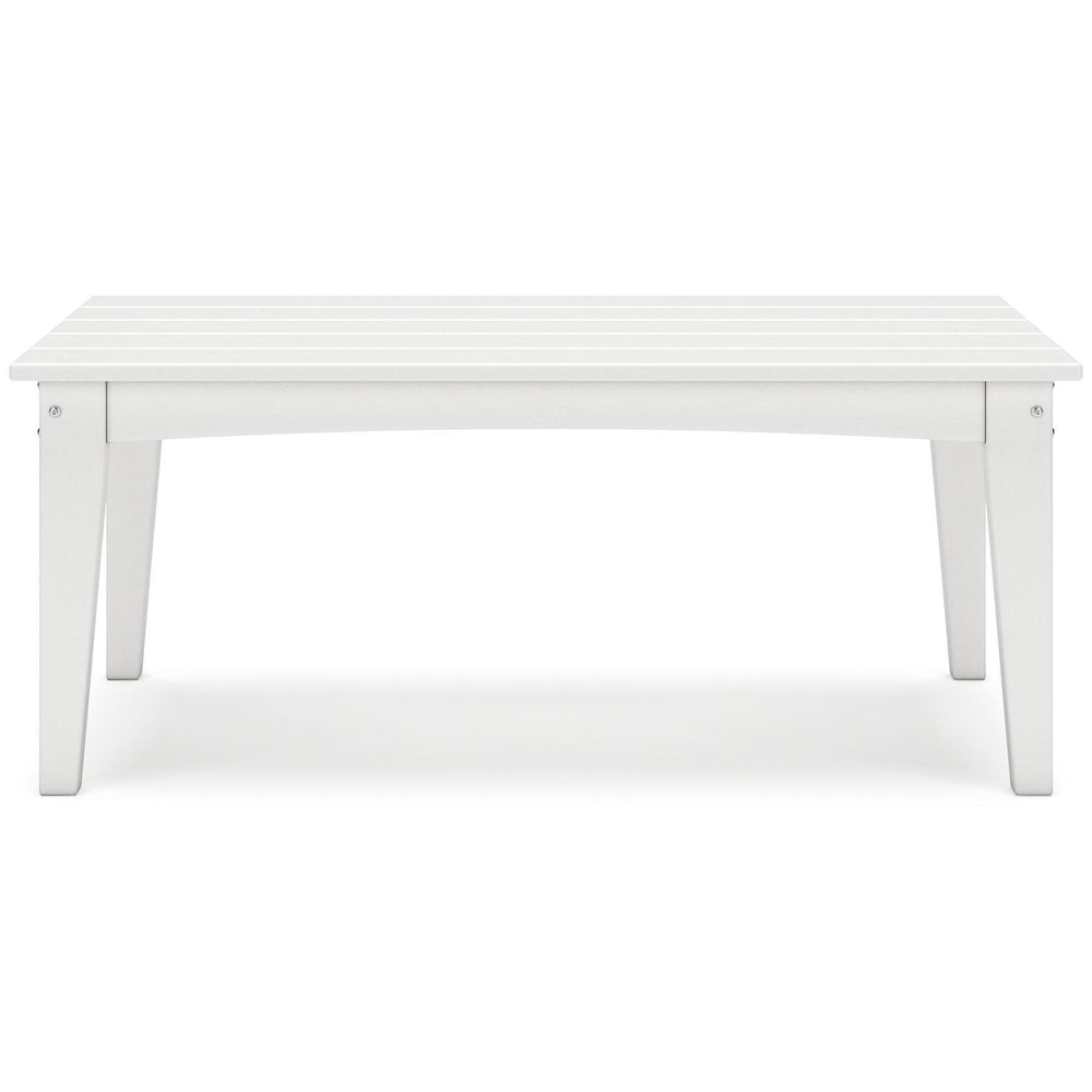 Drift into outdoor entertainment bliss with this coffee table. Dressed in a bright white for a fresh feel, it weathers sunny summer days and cozy winter nights with durable MEGA-TUFF® HDPE material. When it comes to form and function, the table's rain-shedding slatted design simply goes with the flow. Use it to hold outdoor decor, drinks or snacks.
