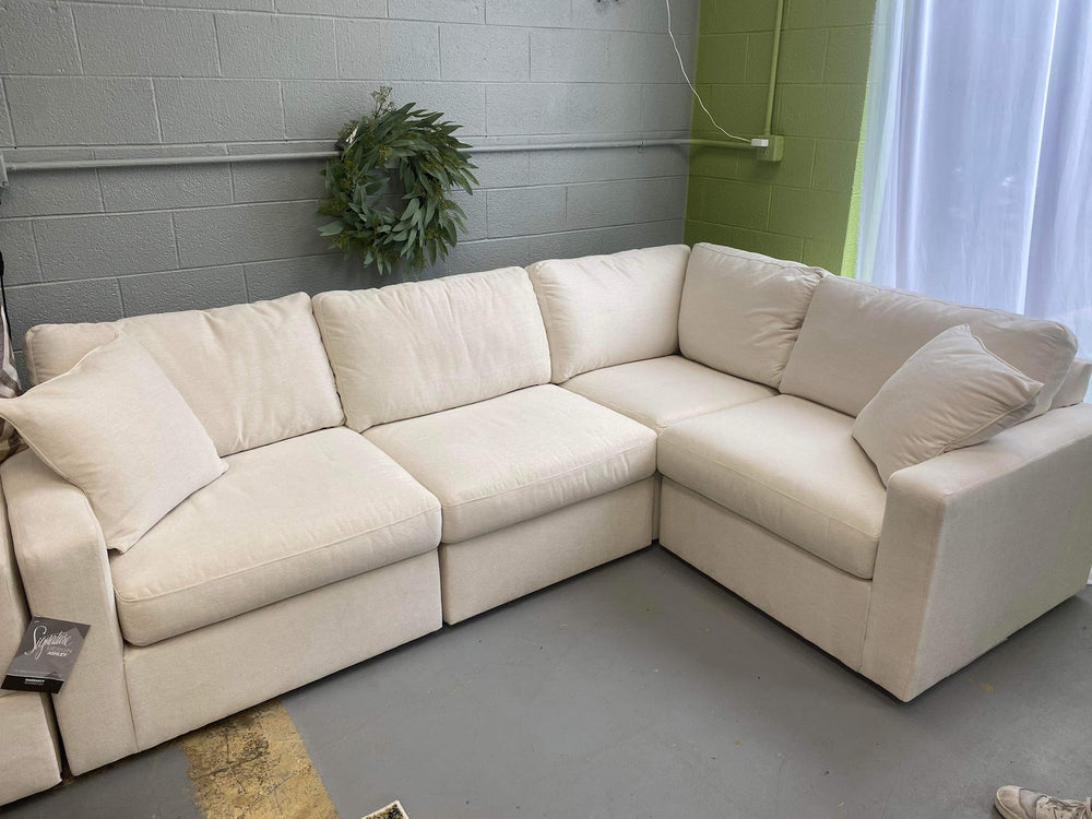 - Fully customizable and modular: left-arm facing corner chairs, armless chairs, wedges, right-arm facing corner chairs, ottomans, storage console, and chaise