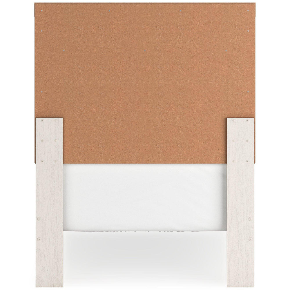 With its clean-lined look and modern attitude, this bedroom package is a fresh style awakening. A crisp, white hue over subtle replicated wood grain easily complements your existing aesthetic. Smooth drawer fronts with antiqued pewter-tone handles complete the look—proof that beauty lies in the details.