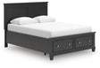 Timeless casual design. Made with hardwood solids, birch veneer and MDF substrate. Clean contemporary black painted finish. Round metal drawer knobs with a satin nickel color finish. Drawers feature French/English dovetail construction with metal ball-bearing side glides. Thick profiled tops, framed drawer fronts and traditional tapered feet. The storage drawers in the footboard offer extra deep space for storing larger bedroom essentials. Full roll slat foundation for mattress only. No foundation box spring required.