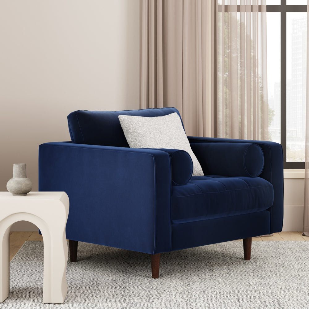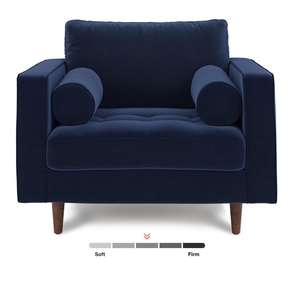 This is an Article Sven 42" Tufted Leather Lounge Chair - Plush Cascadia Blue fabric. It's in perfect and brand new condition with no defects.
