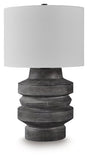 With this table lamp, you'll find an expert balance of modern design and casual function. Its distressed black faux wood finish captures the essence of natural motifs while maintaining a curated sense of character. What an artistic approach to everyday illumination.