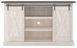 With its two-tone finish, crossbuck details and authentic charm, this TV stand is right in tune with your relaxed approach to high style. Beautifully made to accommodate your media equipment, it’s well equipped with adjustable shelving, cutouts for wire management and, of course, a pair of sliding barn doors you can center or place to the side. What a mastery in modern farmhouse living.
