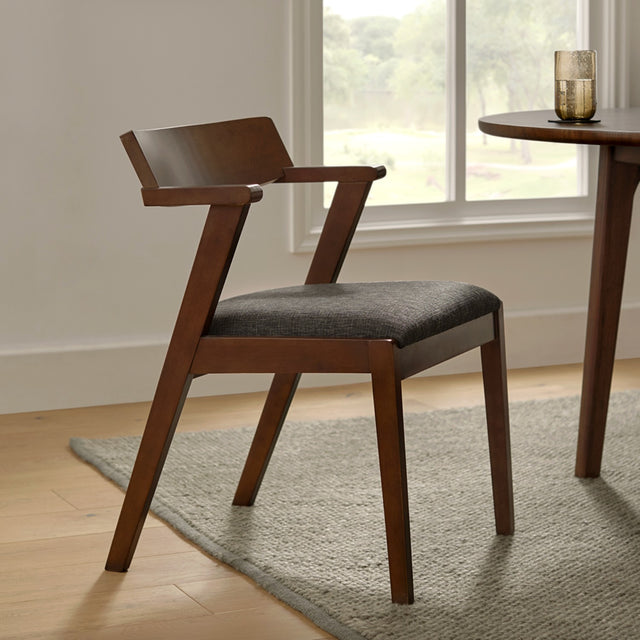 This is a Zola Dining Chair in Licorice upholstery and Walnut wood. We have TWO of these at time of listing.