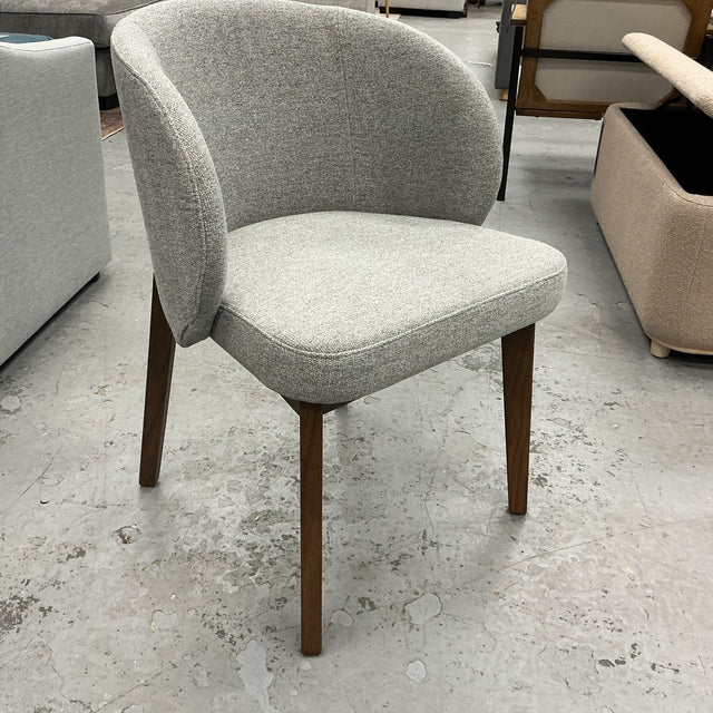 These are dining armchairs from the Alta collection. Camellia Gray fabric and Walnut legs. We have SIX of these at time of posting.