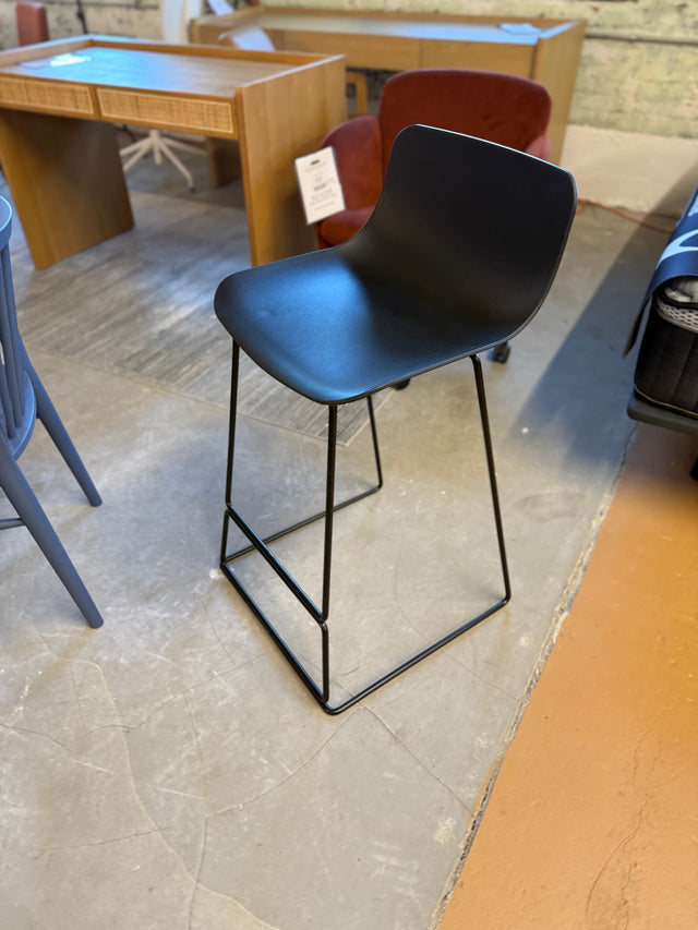 This is an Article Anco Counter Stool in Black color. It offers a sleek modern silhouette with a sturdy build, perfect for stylish everyday seating.