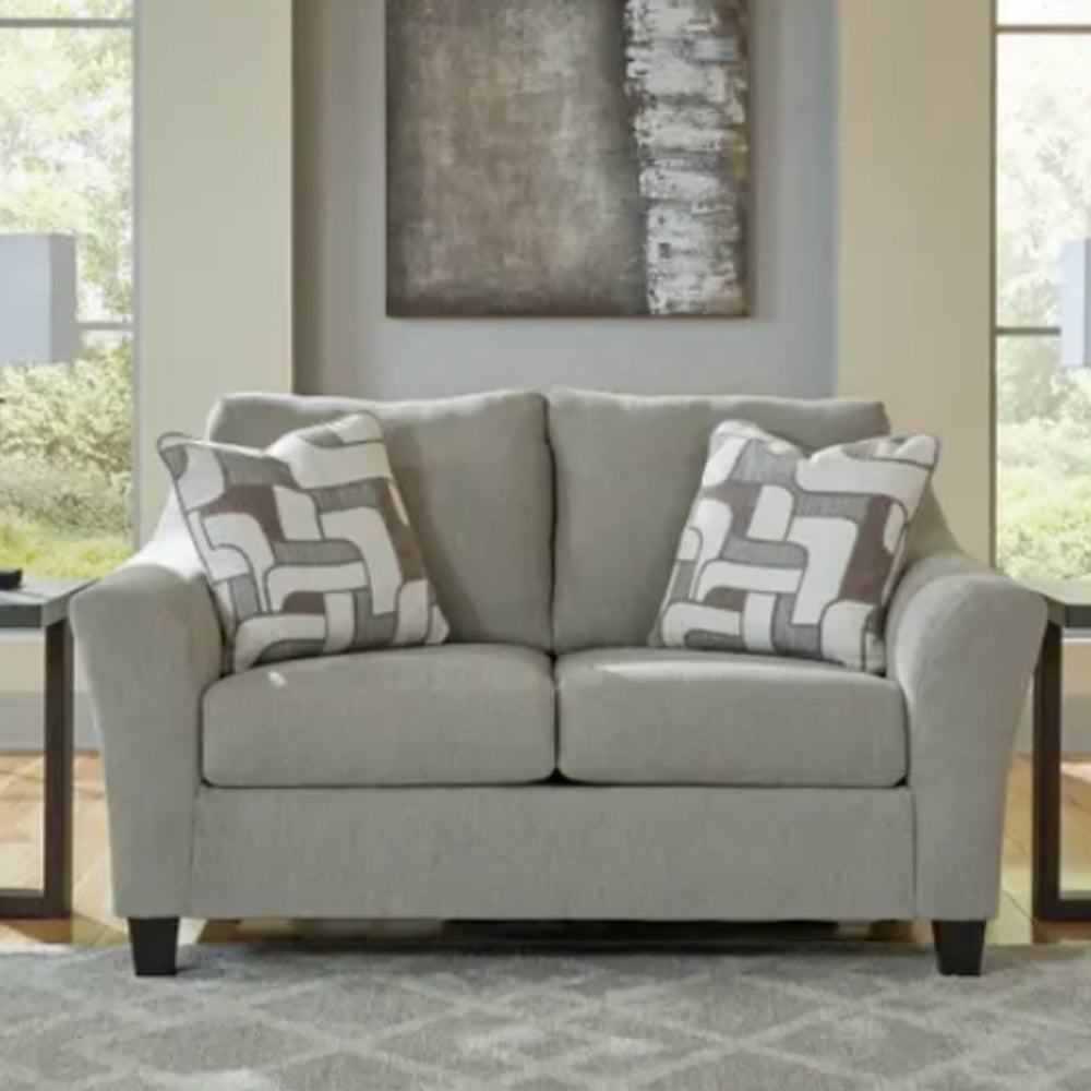 Subtle in color, big on style possibilities. This loveseat is a transitional take on everyday comfort. Its soft-to-the-touch upholstery keeps you cozy as you lounge, and the neutral hue is a perfect canvas for adding your own fashionable flair. Tidying up after kids or pets? It's easy to clean under and between the removable cushions.