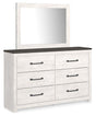 Cool, clean and casually modern. This dresser and mirror’s wispy whitewash and gray finish sets the tone for your calming sanctuary. Large linear pulls add dimension and authenticity. Six smooth-gliding drawers neatly accommodate your bedside needs.