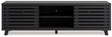 Entertain the art of modern living with this TV stand. Pairing a subtle wood grain look with a trend-right matte black finish, it’s beautifully in tune with your clean-lined design sensibility. Packed with potential, two sliding doors reveal even more adjustable shelving, just the ticket for storing your tech consoles, DVDs and games.