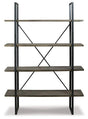 Got books? Bring them to this bookcase. Its industrial mix of dark wood and black metal brings trendsetting vibes to your home. Four sturdy shelves hold your belongings with ease. Mix in some metallic decor for a home office look you can’t refuse.