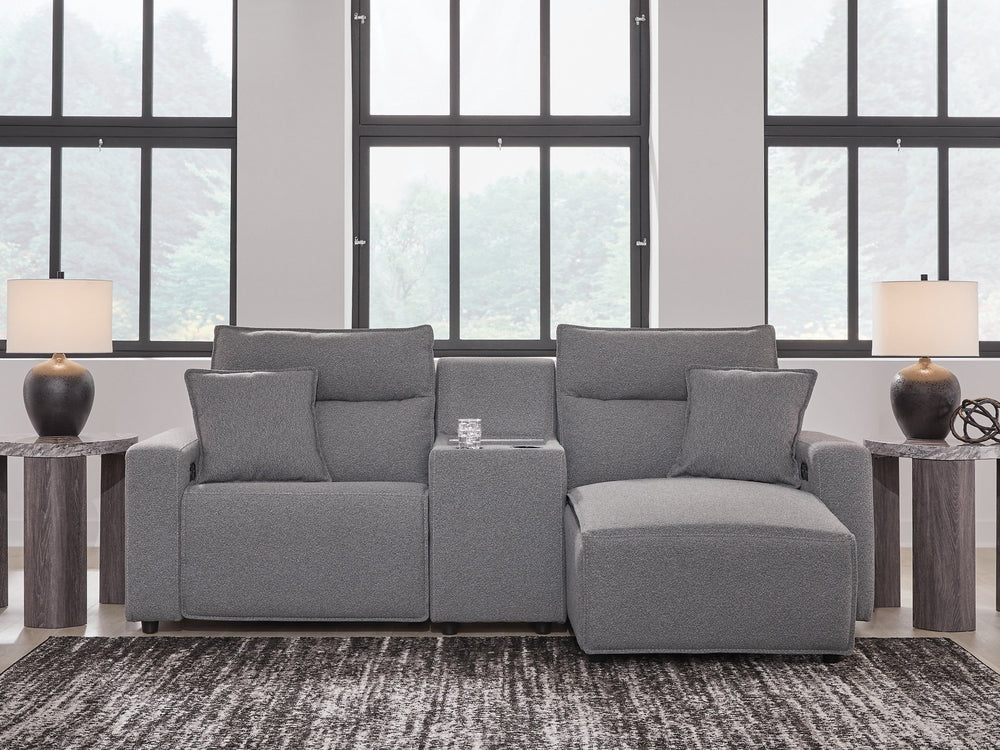 Modmax Power Reclining Sectional with Chaise - 3-Piece: Left-Arm Facing Power Reclining Chaise/Console w/ Audio System/Right-Arm Facing Power Reclining Chaise is backordered and will ship as soon as it is back in stock.