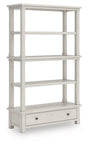 This bookcase is sure to impress when it’s time to study or work from home. With its antiqued white finish and wood grain texture, modern farmhouse-style workstations have never been so fashionable. The open four-shelf design—two adjustable and two fixed—is ideal for storage and displaying your treasures. And that large storage drawer brings even more function to your workspace. All that’s missing is you.