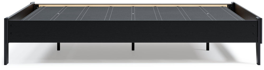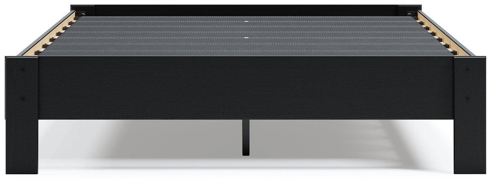 If you’re a fan of clean, crisp and contemporary interiors, rest assured this queen panel platform bed suits you. Its linear profile is enhanced with a matte black finish with subtle replicated wood grain. The headboard's peekaboo cutout adds a cut-above element. Hard to believe such a high-style aesthetic can be so attractively priced. Best of all, our innovative bed-in-a-box shipping system delivers your new bed right to the door.