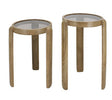 Simply chic. Made with stunning craftsmanship, this accent table set is a masterclass in classic forms. A natural brown finish beautifully enhances the mango wood frames. Light brown glass tabletops keep the inviting monochromatic aesthetic right on point. And with its bunching design, you can stage this set together for a cool layered look.