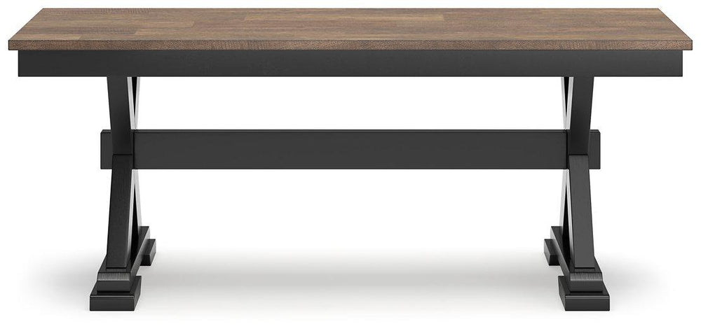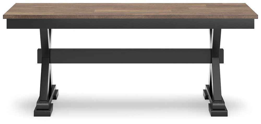 Raise the bar on modern farmhouse style with this dining bench. Its casual good looks are accentuated with a handsome two-tone finish. A sturdy silhouette adds a hearty element, whether your style is vintage, country or eclectic. This richly crafted seating option serves up charm wherever folks decide to take a seat.
