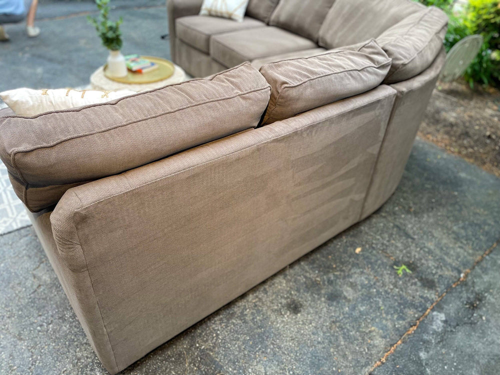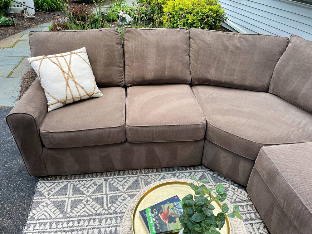 Klaussner 3 piece corner sectional couch.New Price: $2800Your Price: $950📝 In excellent condition. No Rips, No Stains, No Damage, and Smoke Free. This sectional is solid and has very nice linen fabric. It just has a tiny scratch on the arm (see pic) Professionally cleaned and extra stuffing added to cushions to freshen it up for a new home.🚛 FREE DELIVERY to your living room within 10 miles of Wayland and a small fee beyond that based on distance.🏢BRANDKlaussner🎨 COLORLight Brown📋 DETAILSExcellent conditionProfessionally cleanedExtra stuffing added to cushionsNo StainsNo RipsNo DamageSmoke-freeFull Delivery Available📏 DIMENSIONS102” L102” W39” D32” H✏️ Other Notes:Carpet, table and throw pillows not included.Existing couch purchase/removal available.PayPal, Venmo and cash.First come, first serve.