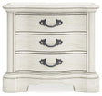 Add a touch of romance to your bedroom with this nightstand. Its antiqued white painted finish and serpentine-shaped silhouette are the definition of easy elegance. The nightstand's three spacious drawers accommodate bedside essentials, while an integrated power outlet and USB charging keep up with your high-tech lifestyle.
