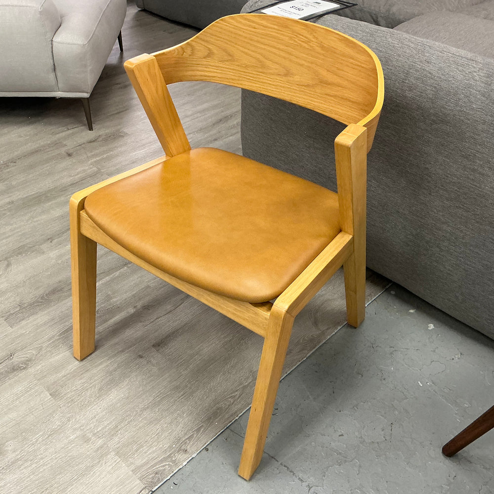 These are Meja dining chairs in Oak wood and Taos Tan leather. We have TWO of these at time of posting.