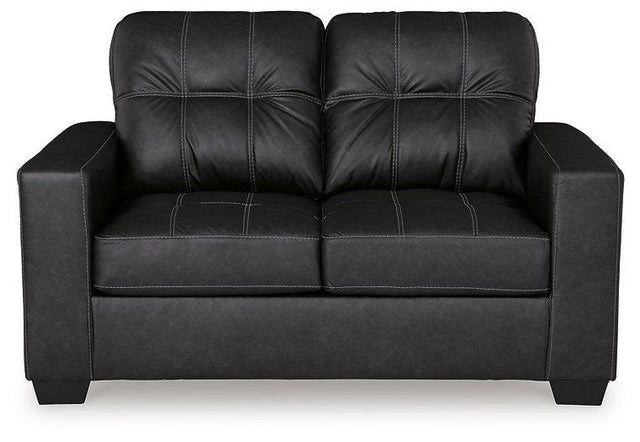 Everyday comfort meets versatile style in this loveseat. The handsome hue of the goes-with-anything faux leather takes away the stress of styling, expertly pairing with your existing aesthetic. From kicking back on the weekends to relaxing post-work, living room lounging has never been so chic.