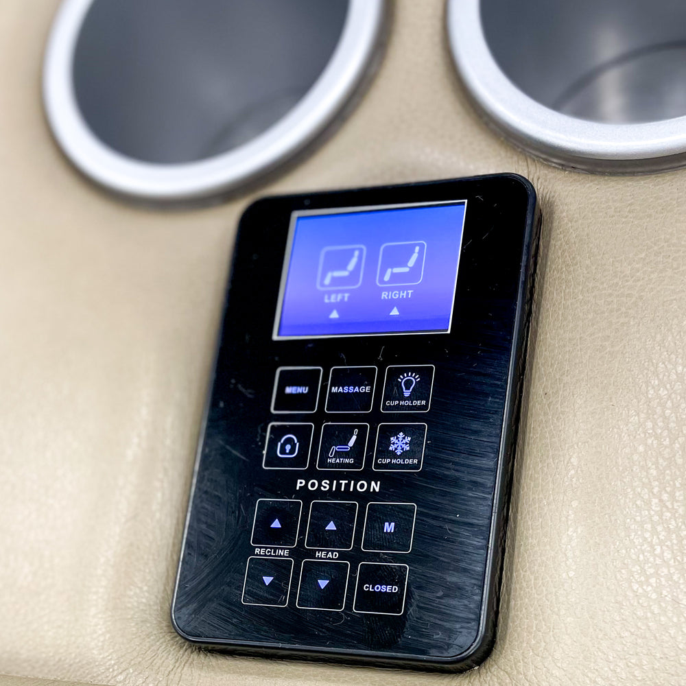 This sectional couch is in like-new condition. It has 3 power recliners, seat massage, heat, seat memory, and cup holders with coolers. It has been professionally cleaned and conditioned to get ready for a new home.