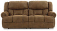 Expansive elegance. This reclining sofa makes a sizable style statement. Its large scale enhances the luxe appearance, magnifying the beauty of richly warm brown faux leather. Polishing off the piece is an effortless reclining motion, which adds a layer of function to this masterclass in form.