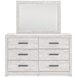Charmingly designed, this dresser with mirror embraces the aesthetics of countryside living and repurposes them for modern settings. Its whitewash paint, replicating the wear and tear of time, appeals to your love of vintage character. A fresh take on function, the smooth-gliding drawers are a chic storage spot for your clothes and linens.