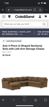 Crate & Barrel Axis4 Sectional w/Chaise is backordered and will ship as soon as it is back in stock.