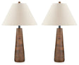 Clean, contemporary style can be sleek and shiny—or subtle and earthy. We love how this table lamp set falls into the latter category. Pairing stylish shades with wood bases bathed in a honey brown finish, the set has a delightfully different yet simply illuminating look. The pair is the perfect accent when staged in the living area or entryway.