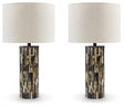 This mosaic patterned table lamp set is a masterful interpretation of neutral hues. It prioritizes unique personality without sacrificing function. A decidedly contemporary addition to your decor, this eye-catching duo sets the style tone for your home when staged in the entryway or living area.
