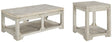 Take in the country fresh look of this occasional table set and reminisce of a simpler time. The coffee table and rectangular end table’s farmhouse style is evident in its stocky design with planked top/bottom shelves, unique triangle accents and relaxed whitewashed finish. The coffee table’s easy lift-top feature accommodates eating or working in front of the television. With a handcrafted look, you'll love the casual feel these tables will bring to your living area.