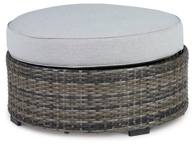 This cool, casual outdoor ottoman will raise the comfort level and visual appeal of your outdoor living space. Made of handwoven wicker in neutral tones of light and dark gray, the cushioned ottoman blends beautifully into your lanai or pool and patio area with a comfy cushion wrapped in Nuvella® high performance fabric that is stain resistant, fade resistant and easy to clean. This versatile companion piece can be used on its own or paired with pieces of the matching sectional to create a space that holds up to Mother Nature and ages gracefully for years of enjoyment.