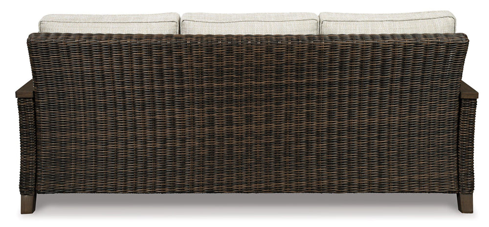 Pretty enough for trendy interiors, yet durable enough to weather the elements, the Paradise Trail outdoor sofa rises to the challenge beautifully. Handwoven resin wicker over rust-proof aluminum merges high style with low maintenance. Rest assured, though the exposed armrests and feet look remarkably like wood, their sturdy aluminum construction is perfectly suited for alfresco living. Plush seat cushions and throw pillows wrapped in high-performing Nuvella® fabric aim to please.