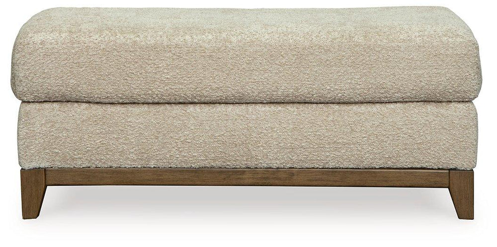Serene style with a modern sensibility. Delight in the cozy, versatile embrace of this seating package. It takes an on-trend approach to irresistible texture and natural beauty, showcasing soft neutral upholstery accented with a transitional wood trim. As refined as it is laid back, this set also keeps comfort a priority with plush, thick seat cushions.