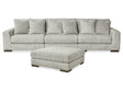 Sit back and enjoy the velvety softness of this sectional sofa and ottoman package. Its contemporary design is accentuated by a subtle chevron pattern that masters the art of smart and sophisticated style.