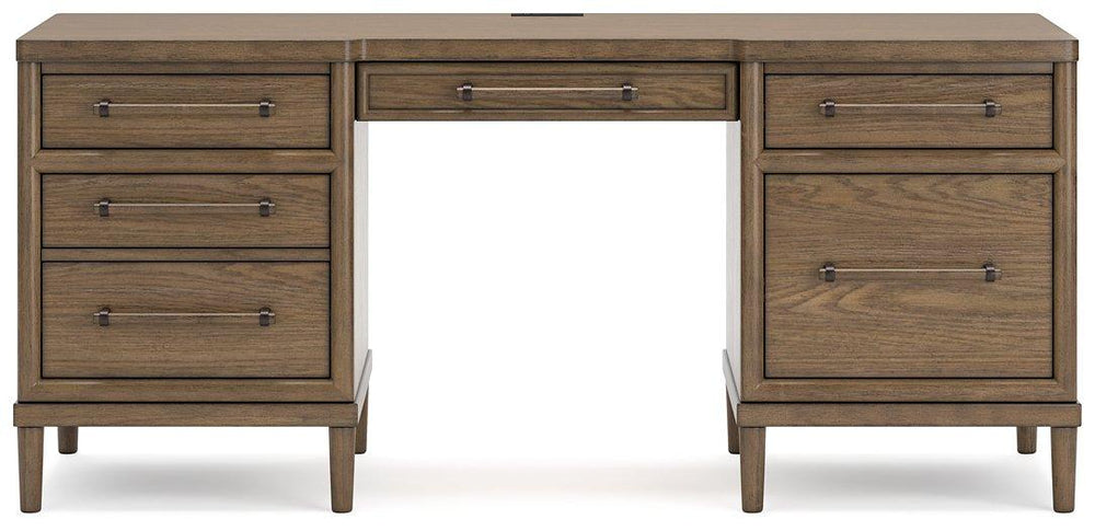 Give your mid-century modern decor that finishing touch with this home office desk and bookcase. Spacious drawers with unique wooden drawer pulls enhance the design with stunning style. This set takes minimalism to the max.