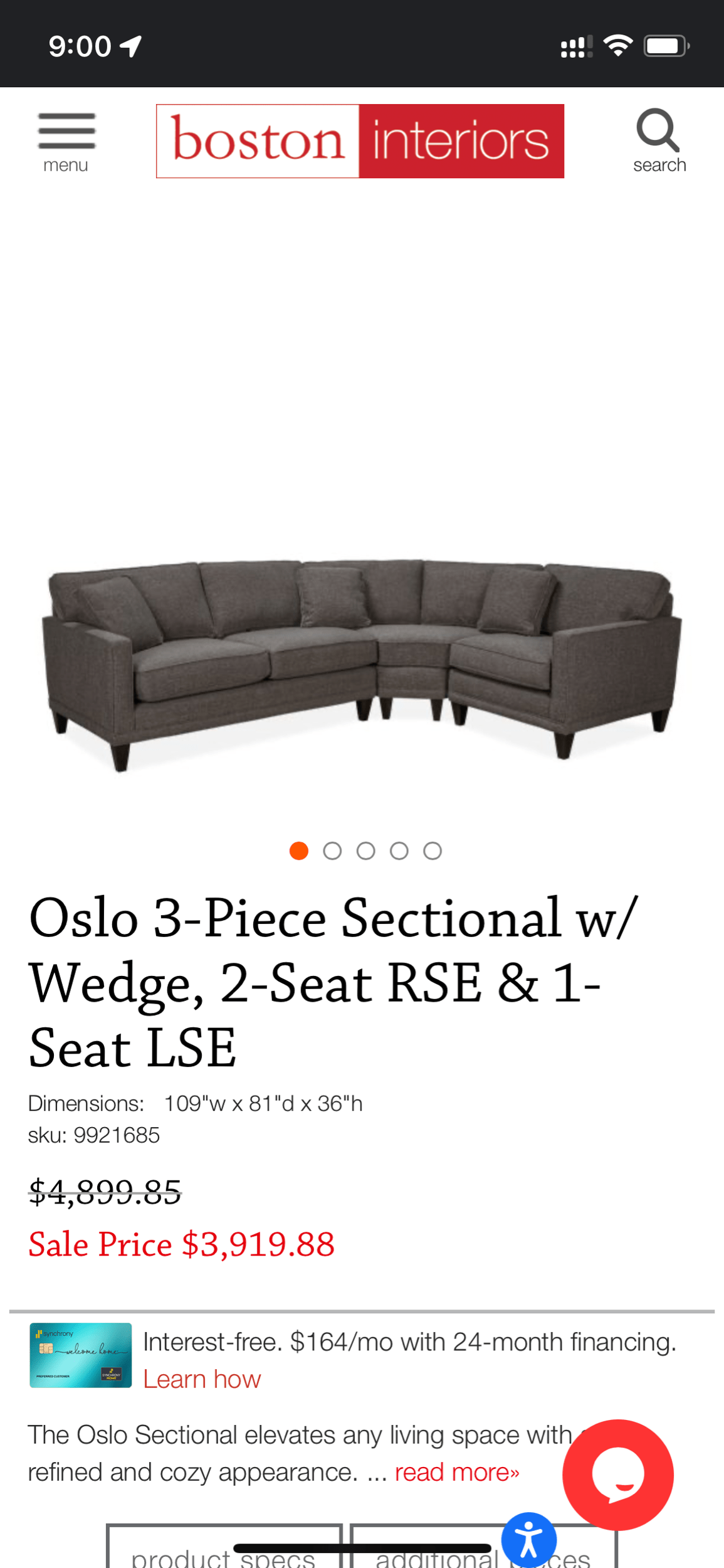 🔥 Rowe Furniture Oslo 3 piece Sectional Couch w/ Wedge sold by Boston Interiors