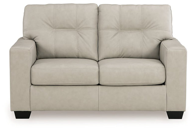Whether your inspiration is contemporary or classic, this loveseat's good looks and affordable luxury are hard to deny. Its clean-lined silhouette and skillfully matched leather and faux leather upholstery offer a transitional sensibility that's right at home in your home. And the ample cushions with tufted details invite you to relax in comfort.