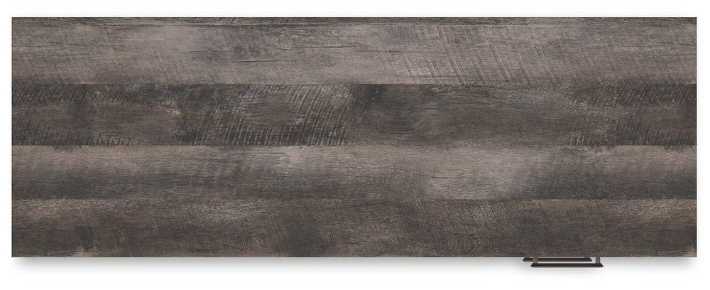 • Top with rustic gray planked replicated oak grain with authentic touch