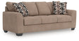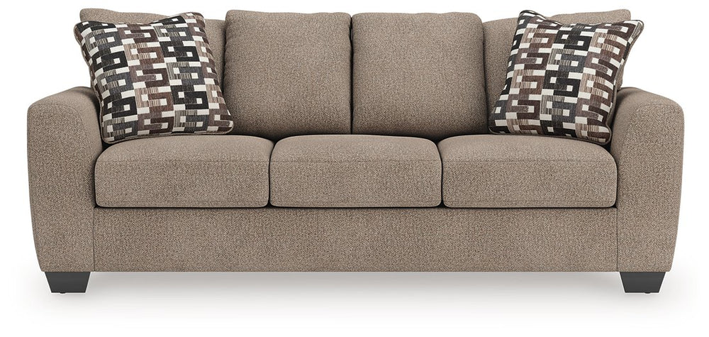Transitional and right on trend. This sofa’s upholstery is a delightful change from the ordinary, with hints of soft brown giving the gray hue added depth. It’s punctuated with chic accent pillows in an eye-catching, stylized stripe design. Whether you're hosting friends and family or relaxing solo, this sofa invites homey, comfortable character into your space.